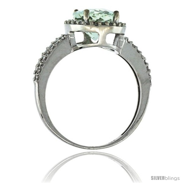 Sterling Silver Diamond Natural London Blue Topaz Ring Oval Stone 10x8 mm 2.4 ct 1/2 in wide