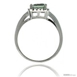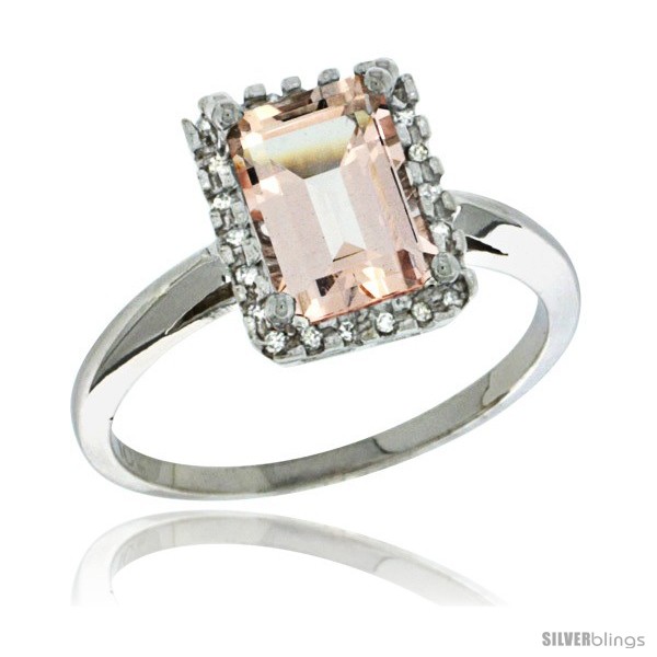 Sterling Silver Diamond Morganite Ring 1.6 ct Emerald Shape 8x6 mm, 1/2 in wide