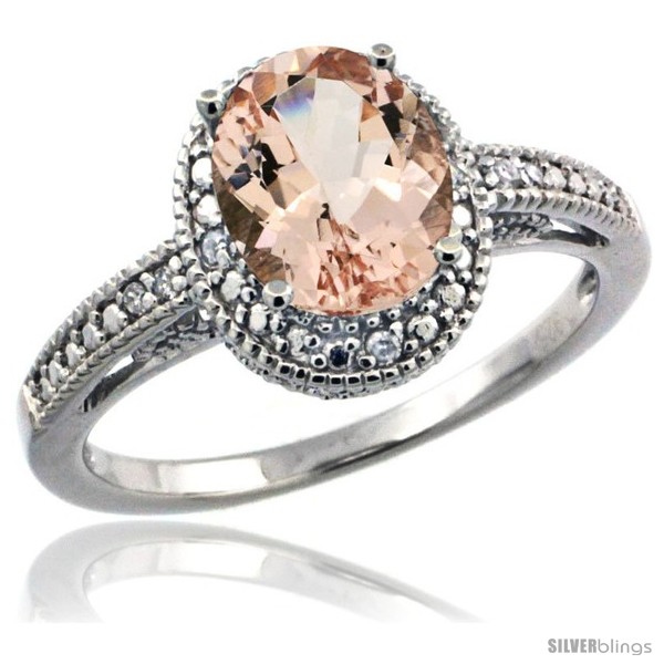 Sterling Silver Diamond Vintage Style Oval Morganite Stone Ring Rhodium Finish, 8x6 mm Oval Cut Gemstone