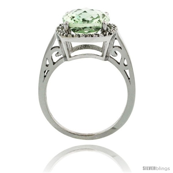 Sterling Silver Diamond Natural Pink Topaz Ring 5.17 ct Checkerboard Cut Cushion 12x10 mm, 1/2 in wide