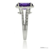 Sterling Silver Diamond Halo Natural Smoky Topaz Ring 2.85 Carat Oval Shape 11X9 mm, 7/16 in (11mm) wide