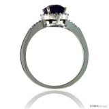 Sterling Silver Diamond Natural Smoky Topaz Ring 1.17 ct Oval Stone 8x6 mm, 3/8 in wide