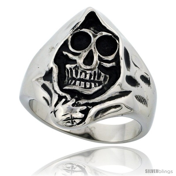 Surgical Steel Biker Skull Ring Grim Reaper Head 15/16 in long