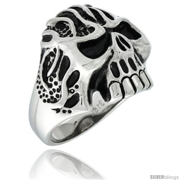 Surgical Steel Biker Skull Ring w/ Tribal Tattoos