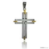 Stainless Steel Cross Pendant 2-tone Gold finish, 2 in tall, w/ 30 in Chain