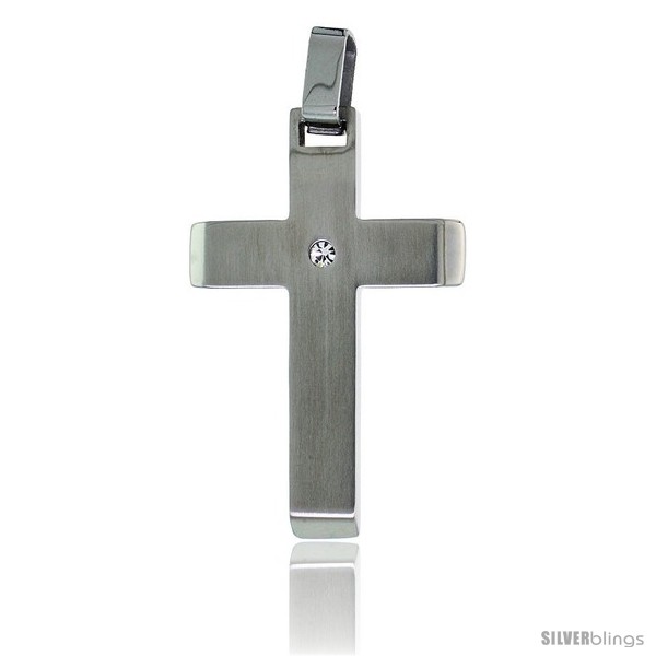 Stainless Steel Latin Cross Pendant w/ CZ Stone, 30 in chain