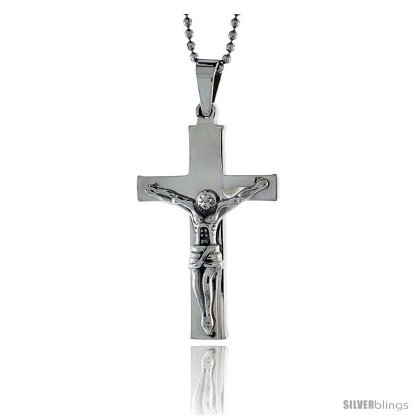 Stainless Steel Plain Crucifix Pendant, 1 1/2 in tall, w/ 30 in Chain