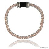 This gorgeous and classy Crystal Bracelet made with Stainless Steel is simple yet sophisticated. inside of this Stainless Steel Mesh Bracelet if stuffed with some shiny glimmery crystals. The clasp is magnetic, with a blackened finish. nice quality.
