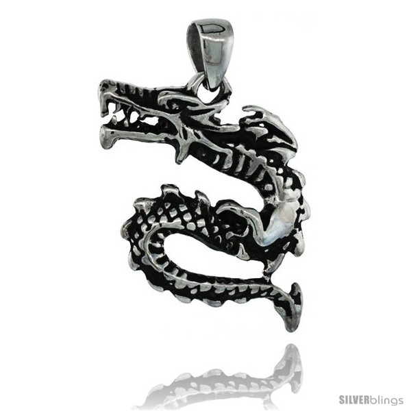 Surgical Steel Chinese Dragon Pendant 1 1/2 in (38 mm) tall, comes w/ 30 in Chain