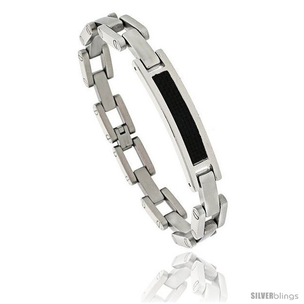 Gent's Stainless Steel / Carbon Fiber Link Bracelet, 3/8 in wide, 8 1/2 in long
