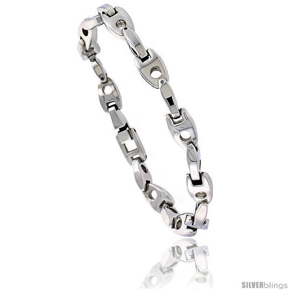 This impressive Fancy Bracelet made with Stainless Steel is stylish and perfect for many occasions. 8 1/2" Solid Link 5/16" 8 mm