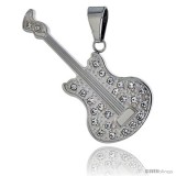 Stainless Steel Electric Guitar Pendant w/ CZ Stones, 30 in chain