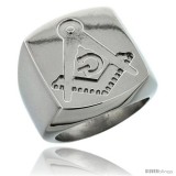Surgical Steel Masonic Symbol Ring Square and Compass 3/4 in -Style Rss403