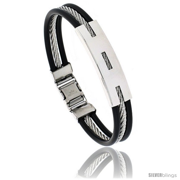 This distinctively stylish & Rubber Bracelet crafted of Stainless Steel expresses self-confidance. 8" Cable Rubber " 9 mm