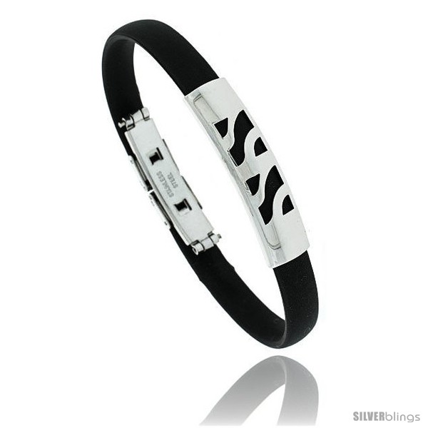 This impressive & Rubber Bracelet fashioned in Stainless Steel is subtle and elegant. 8" Rubber Bracelet
