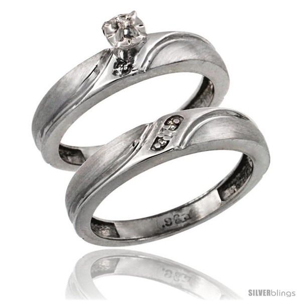Sterling Silver 2-Pc Diamond Engagement Ring Set w/ 0.043 Carat Brilliant Cut Diamonds, 5/32 in. (4mm) wide