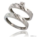 Sterling Silver 2-Pc Diamond Engagement Ring Set w/ 0.049 Carat Brilliant Cut Diamonds, 5/32 in. (4mm) wide