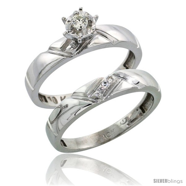 Sterling Silver 2-Piece Diamond Engagement Ring Set, w/ 0.07 Carat Brilliant Cut Diamonds, 5/32 in. (4mm) wide -Style Ag112e2