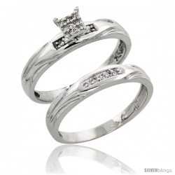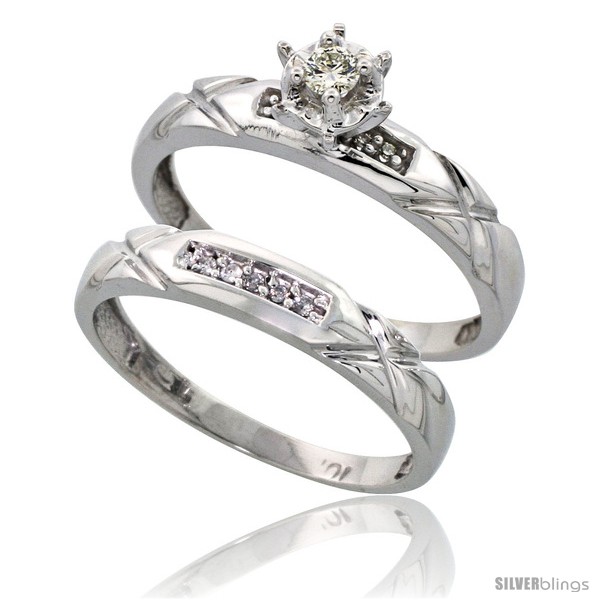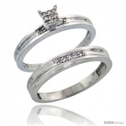 Sterling Silver 2-Piece Diamond Engagement Ring Set, w/ 0.09 Carat Brilliant Cut Diamonds, 1/8 in. (3.5mm) wide