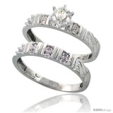 Sterling Silver 2-Piece Diamond Engagement Ring Set, w/ 0.09 Carat Brilliant Cut Diamonds, 1/8 in. (3.5mm) wide -Style Ag117e2