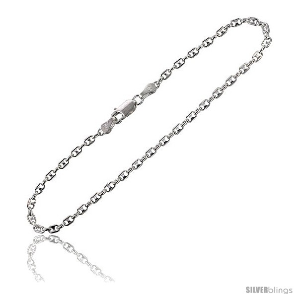 Fashion and style come together in this Anchor Chain fashioned in Sterling Silver which elevates any attire. This is an Italian Made Puffed Anchor (Mariner) Chain Bracelet. It is made in Solid Sterling Silver, Excellent Polished Finish, Flexible, Strong and has a Good Weight to it. It is a thin chain measuring only 1/16" (2.5mm) in Width. It is Nickel Free so it won't cause any allergic reactions due to contact with Nickel. Available in bracelets, anklet and chain lengths from 16 to 30 inches. (7")