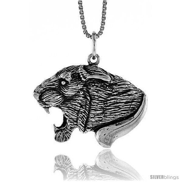 This delightful Animal Theme Pendant fashioned in Sterling Silver is eye-catching. Sterling Silver Lion Head Pendant, Nice Antiqued Finish, Very Well Made. It measures over 3/4" (20mm) Tall not including the bail. NO Chain Included