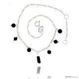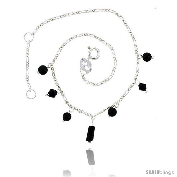 Sterling Silver Anklet Natural Stone Onyx Beads, adjustable 9 - 10 in -Style Sa15