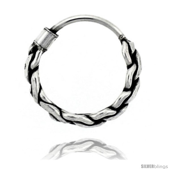 This captivating Bali Style Earrings crafted of Sterling Silver is simple yet stunning. This Teeny Bali Hoop Earrings is made in Solid Sterling Silver. It is Very Well Made with combination of Polished and Antiqued finish. It is a continuous style hoops that measures about 1/2" (12mm) in diameter.