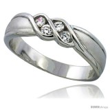 Sterling Silver Cubic Zirconia Ladies' Wedding Band Ring Channel Set, 3/16 in wide