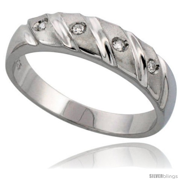 Sterling Silver Men's CZ Wedding Ring Band, 7/32 in. (5.5 mm) wide -Style Agcz506mb