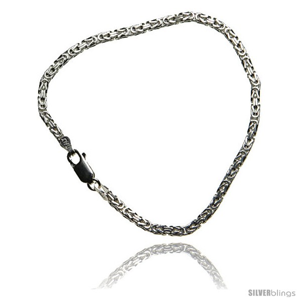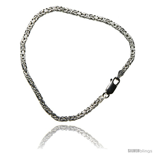 This gorgeous and classy Byzantine Chain crafted of Sterling Silver is stylish and impressive. This is an Italian Made Thin Square Byzantine Chain, it measures over 1/16" (2.0mm) in Width. It is Made of Solid Silver, Finished Very Well and has a Good Solid Weight to it. A Great Chain worn by itself but can also be used as a Pendant chain. It is completely NICKEL FREE, so it is Hypoallergenic and can be Repaired and Polished. Available in bracelets and chain lengths from 16 to 30 inches long.