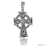 Sterling Silver Trinity Celtic High Cross Pendant w/ Single Clear CZ, w/ 18" Thin Box Chain