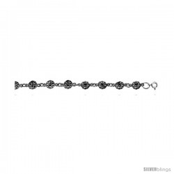 Sterling Silver Spider and Web Charm Bracelet, 3/8 in wide