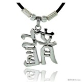 Sterling Silver Chinese Character Pendant for "DRAGON", 1 3/16" (30 mm) tall, w/ 18" Rubber Cord Necklace