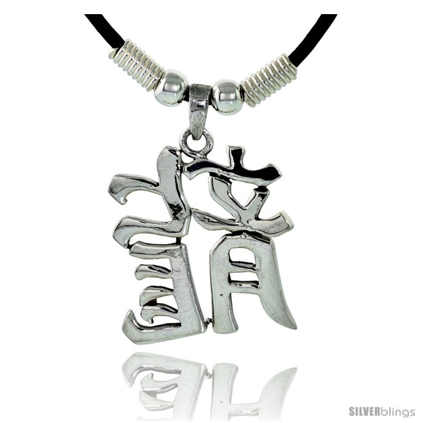 This classy Chinese Character Pendant crafted of Sterling Silver is much sought after. This Chinese Symbol Pendant is crafted from Solid Sterling Silver and comes with an 18" Leather Cord Necklace. The Findings we use are crimped, and would surely add significant time of use to this piece of jewelry. English Translation is printed on a colorful card where the necklace is suspended. This particular design is copyrighted, and any replication or distribution without prior authorization is expressly forbidden.