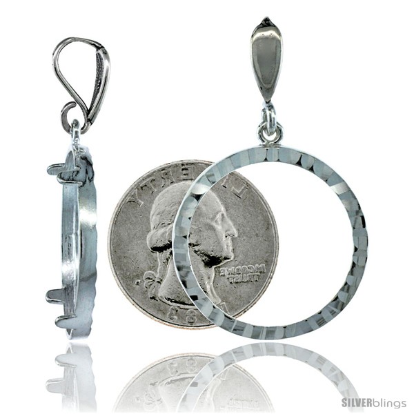 Sterling Silver 24 mm Quarter Dollar (25 Cents) Coin Frame Bezel Pendant w/ Diamond Cut Finish (COIN is NOT Included)