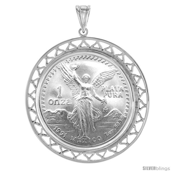 Sterling Silver Filigree Edge 1 Onza Plata Libertad Bezel Pendant For 36 Mm Coins Prong Back (Coin is NOT Included)