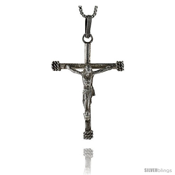 This eye-catching Crucifix Pendant made with Sterling Silver is stylish and graceful. Sterling Silver Cross Crucifix Crucified Jesus Pendant w/ Rope Edge Design, 1 3/8 in tall