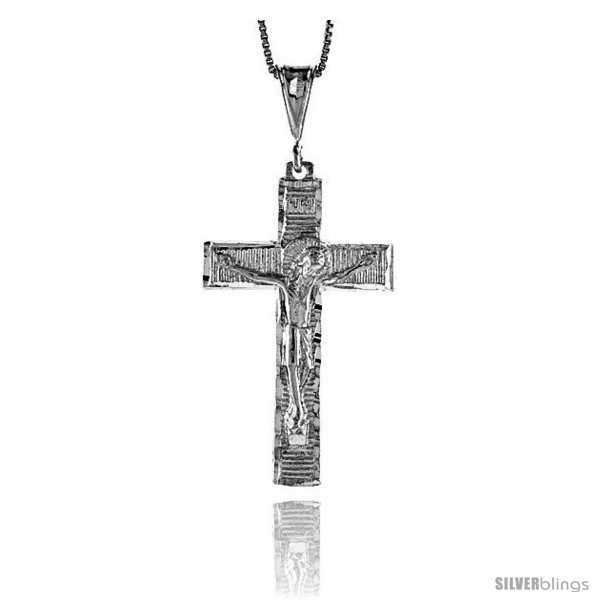 Contemporary yet classic Crucifix Pendant fashioned in Sterling Silver is unique and brilliant. Sterling Silver Crucifix Pendant, Very Well Made. It measures about 1 5/8" (41mm) Tall not including the bail. NO Chain Included