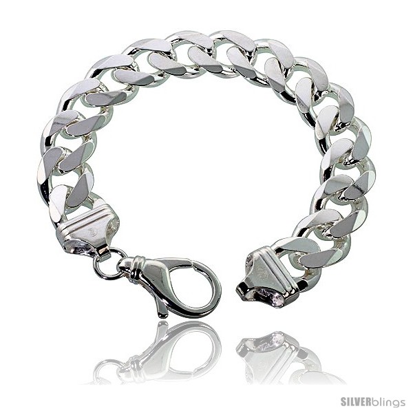 Sterling Silver Italian Curb Chain Necklaces & Bracelets 14.3mm very Heavy weight Beveled Edges Nickel Free