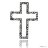 Sterling Silver Cross Cut Out Pendant, w/ Brilliant Cut CZ Stones, 1 1/2" (38 mm) tall, w/ 18" Thin Snake Chain