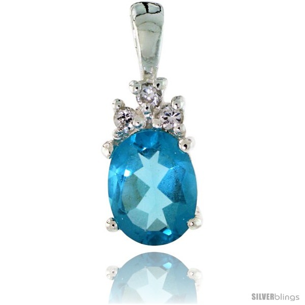 Sterling Silver Oval-shaped March Birthstone CZ Pendant, w/ 9x7mm Oval Cut Aquamarine-colored Stone & Brilliant Cut Clear