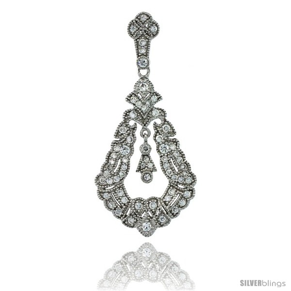 Sterling Silver Pear Cut Out Pendant w/ Cubic Zirconia Stones, 1 1/4 in. (33 mm) tall