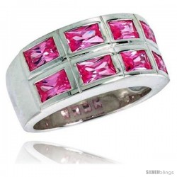 Sterling Silver & Rhodium Plated Hearts Band, w/ Tiny High Quality Sapphire & White CZ's, 1/2" (12 mm) wide