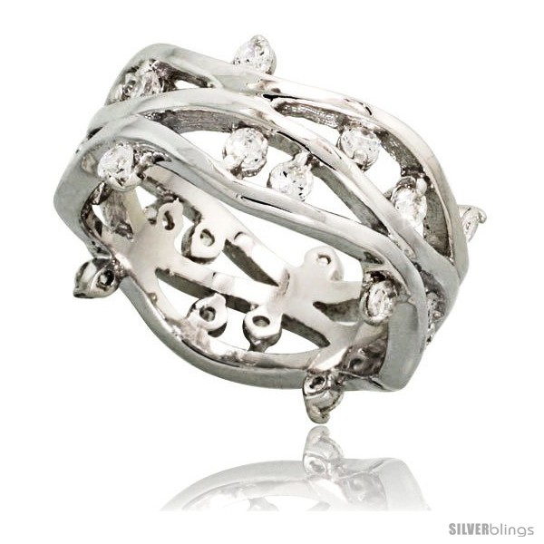 Sterling Silver Vine Pattern Cubic Zirconia Ring with High Quality Brilliant Cut CZ Stones, 3/8 in (10 mm) wide