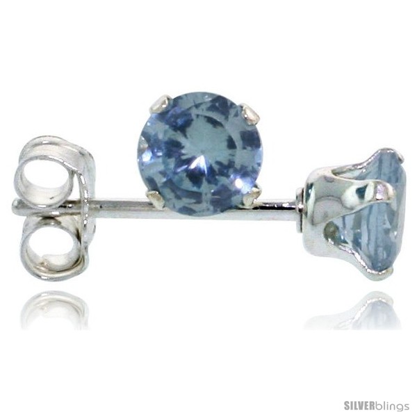 Sterling Silver Brilliant Cut Cubic Zirconia Stud Earrings 4 mm Topaz Blue Color 1/2 cttw