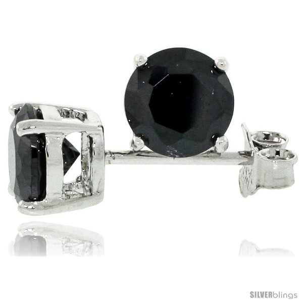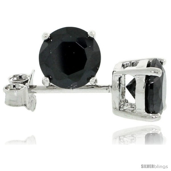 Sterling Silver Brilliant Cut Cubic Zirconia Stud Earrings Black 1 cttw Basket Set Rhodium Finish