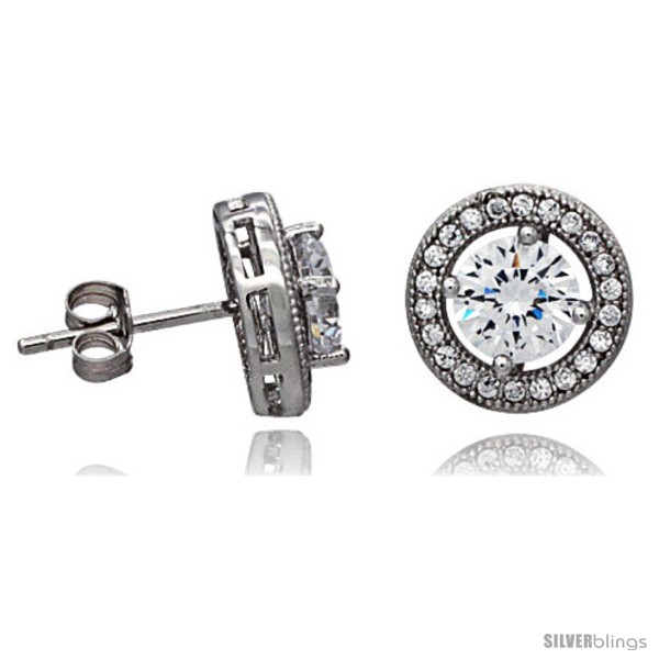 Sterling Silver Cubic Zirconia Micro Pave Halo Stud Earrings 1 ct Center 7/16 in