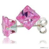 Sterling Silver Princess cut Cubic Zirconia Stud Earrings 5 mm Pink Zircon Color 1 1/2 cttw