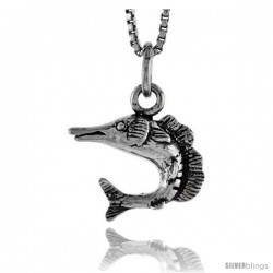 Sterling Silver Marlin Swordfish Pendant, 3/4 in Tall